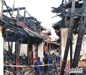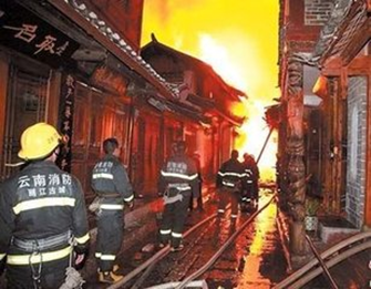 2013年3月11日晚上8點30分許,麗江古城光義街現(xiàn)文巷突發(fā)火災(zāi),火災(zāi)燒毀民房107間,涉及13戶,其中客棧4家,6個院落,過火面積2243.46平方米。