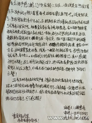 “請領導一定要想辦法幫我找到這位救命恩人,因為沒有他,我都不知道還能不能給你們寫信了。”