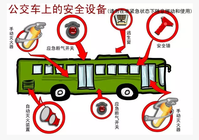乘客應該積極配合駕駛員的疏散工作,通過前后門、使用安全錘敲碎玻璃從窗口撤離。
