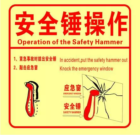 大部分公交車的車窗都是密閉的,車窗旁都有安全錘。使用時,用安全錘的錘尖,迅速猛擊玻璃四個角落,當玻璃被砸出一個小洞時,就會從被敲擊點向四周開裂,呈現蛛網狀。乘客可以用腳將玻璃踹出,跳窗逃生。如果沒有找到安全錘,可利用硬物如高跟鞋、鑰匙等砸碎車玻璃逃生。