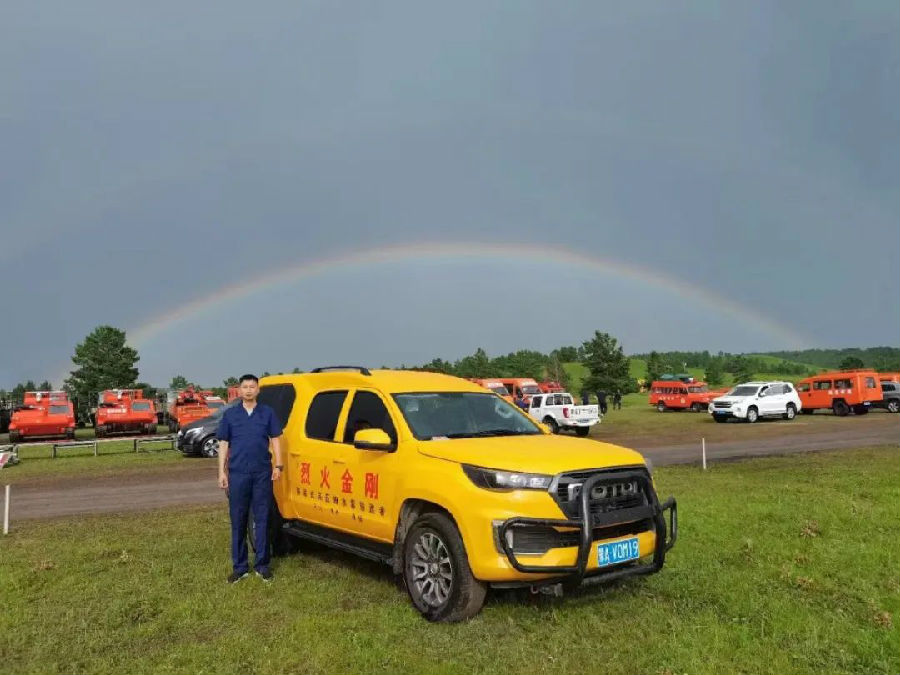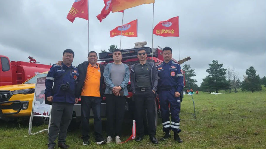 烈火金剛應(yīng)急消防救援車應(yīng)邀參加草原消防滅火演示。