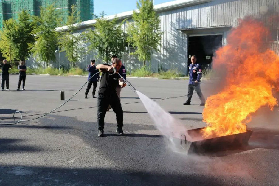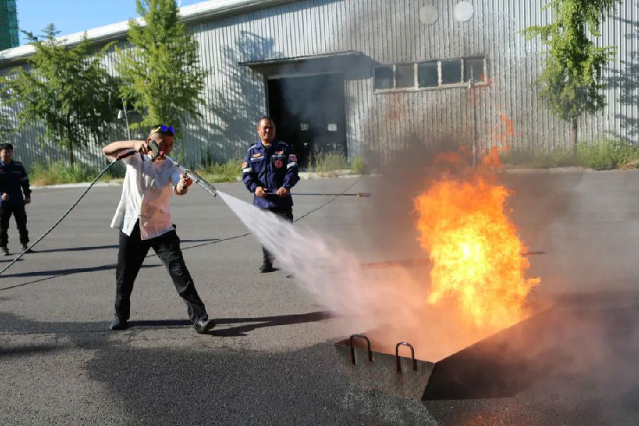 北京正元偉業(yè)集團的員工及行業(yè)專家在金同泰工程師的技術指導下,親自體驗了在熊熊烈火下,使用“天下第一槍”高精尖裝備,瞬間撲滅油火,并給予高度評價。